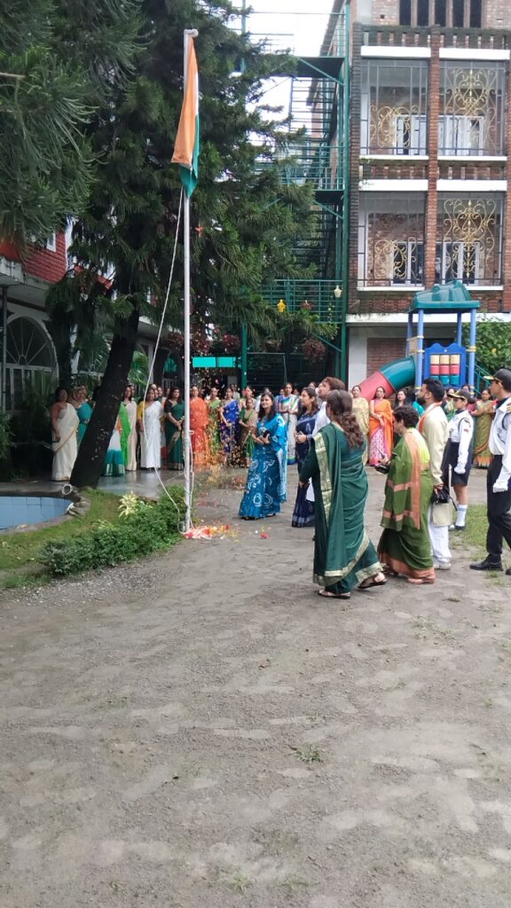 The Managing Director, Dr. Kunal Shamshere Malla, delivered an inspiring speech that highlighted the importance of independence and encouraged the students to uphold the values of integrity, responsibility, and service to the nation. He then led the gathering in a soul-stirring rendition of the patriotic song, “Bharat humko Jaan se pyara hai,” which resonated deeply with everyone present. This was followed by passionate speeches from the students’ leaders—the Head Boy addressed the gathering and expressed deep respect for the freedom fighters and emphasized the role of youth in shaping the country’s future; then, the Head Girl followed with a powerful speech, celebrating the progress India has made and reminding everyone of their duties as responsible citizens.