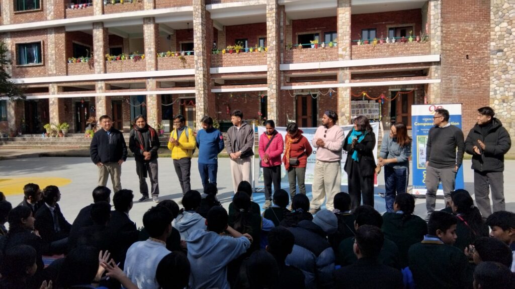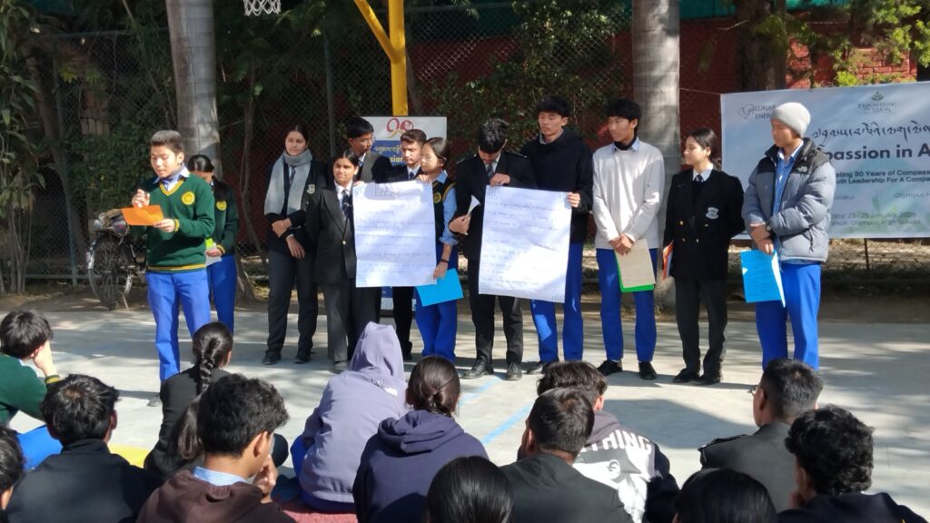 A three-day experiential learning program titled “Compassion in Action” was successfully conducted at Olympus High, Dehradun, from 23rd to 25th January 2025. The initiative also served as a meaningful cultural exchange, bringing together 40 students each from Olympus High and Tibetan Children’s Village School, Selaqui, Dehradun, to participate in shared learning experiences. The program aimed to nurture the values of compassion, peace, non-violence, empathy, and ethical responsibility through participatory, reflective, and creative learning methodologies.