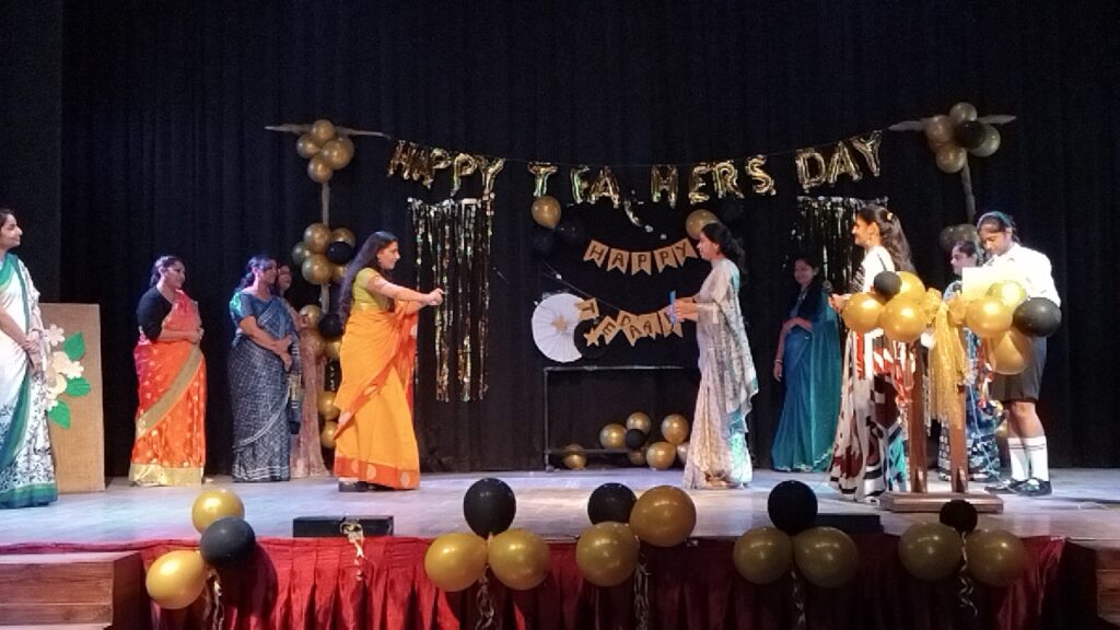 The program unfolded with a series of captivating activities, featuring games and dance performances by Class XII and Class X students that showcased their creativity, coordination, and infectious enthusiasm. A soulful singing performance filled the air with harmony and joy, while Class XI’s elegant dance left the audience spellbound. The crowning glory of the event was the Ramp Walk, which brought glamour, confidence, and entertainment to the forefront, celebrating the teachers’ vibrant spirit and unwavering dedication.