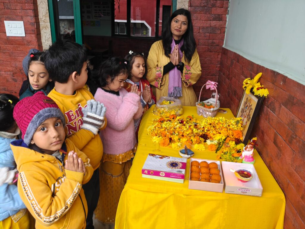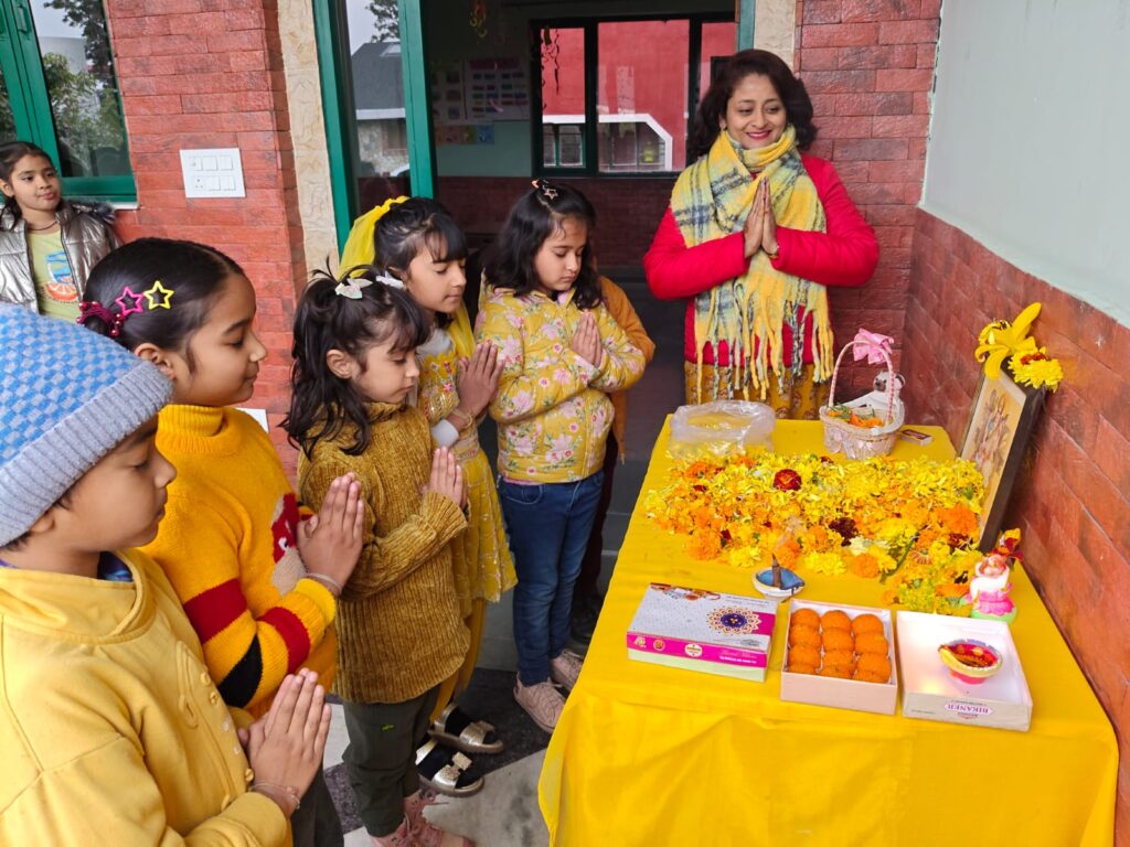 The spring of joy took over when our little ones and teachers sang Saraswati Vandana in their melodious voice and worshiped Goddess of knowledge and wisdom Saraswati Maa by offering yellow flowers to seek the blessings.